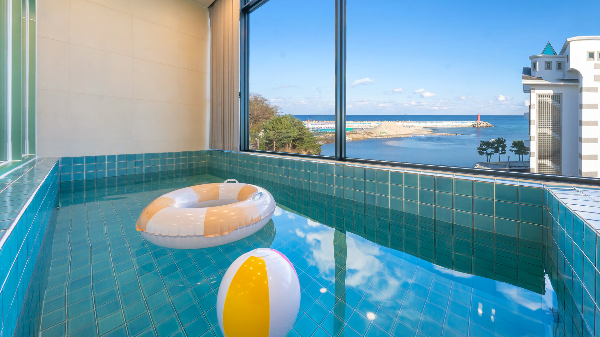 - 집기품목 : 욕실용품, 남녀공용, TV, 금연, 냉장고, 에어컨, 전기밥솥, 취사시설/도구, 풀빌라, 드라이기, 무선인터넷, 세면도구, 전자레인지, 커피포트, 인덕션, 타월, 화재 감지기, 일산화탄소 감지기, 식탁, OTT, 바다전망
